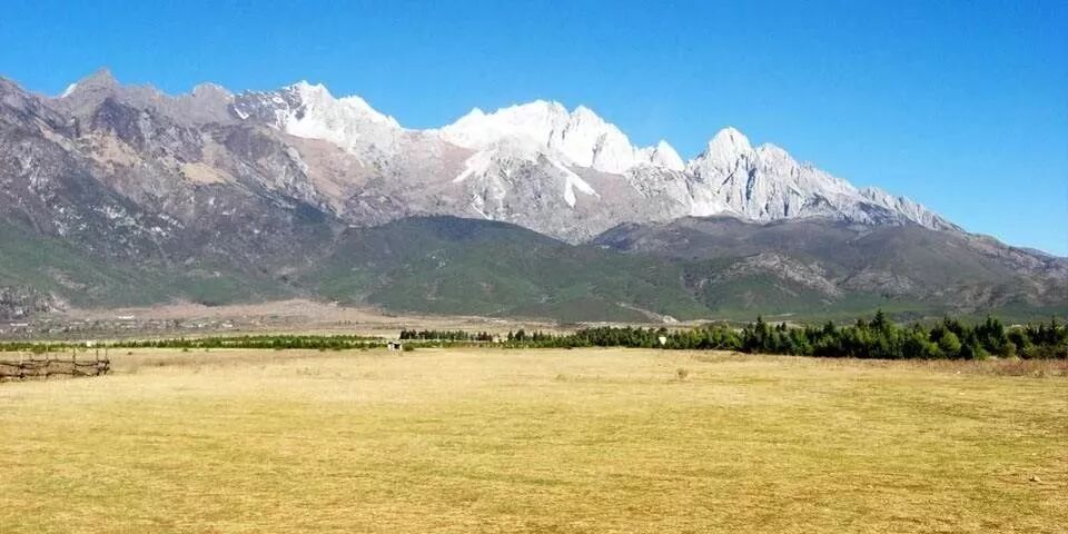 是一个天然草甸牧场,地势平缓起,辽阔的草甸上散落有一棵棵低矮的松树,你脚下是延绵的草场,草木掩映,不时眼前还有牦牛走过,一派高原牧场风光。位于玉龙雪山东簏,在这样高的海拨仰视视玉龙雪山全貌,可以说是最近的、 也是最佳之地。衬着雪山远景,这里是观景拍照的理想之地。