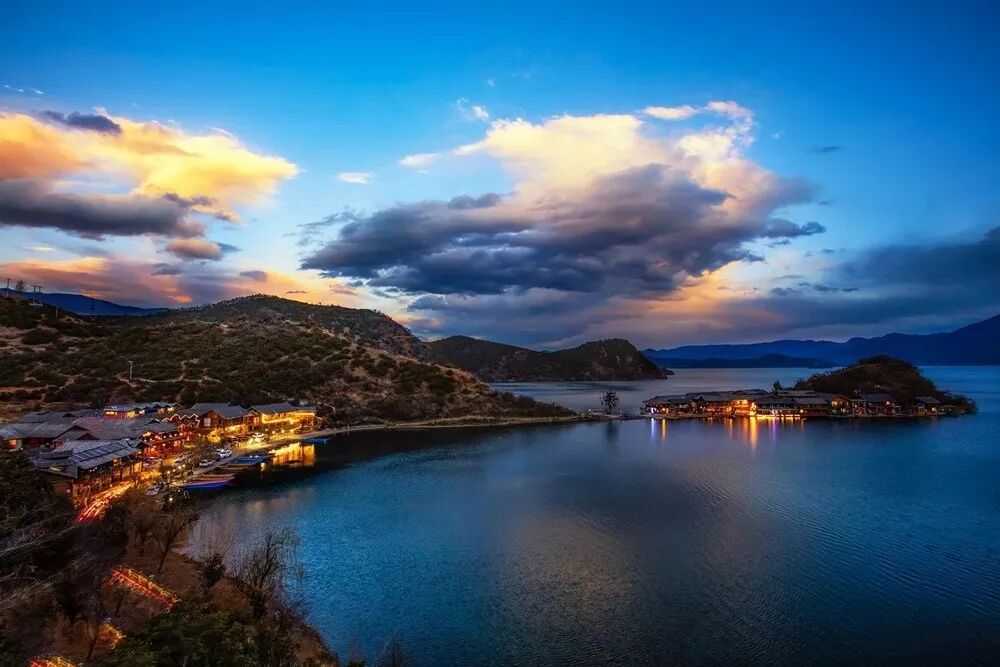 位于滇川边界,海拔2685米,四周青山环抱,湖岸曲折婀娜,风光旖旎,民风质朴,有“高原明珠”之称。湖畔居住的摩梭人奉行“男不娶女不嫁”的走婚制度,所以泸沽湖又被称为“东方女儿国”。