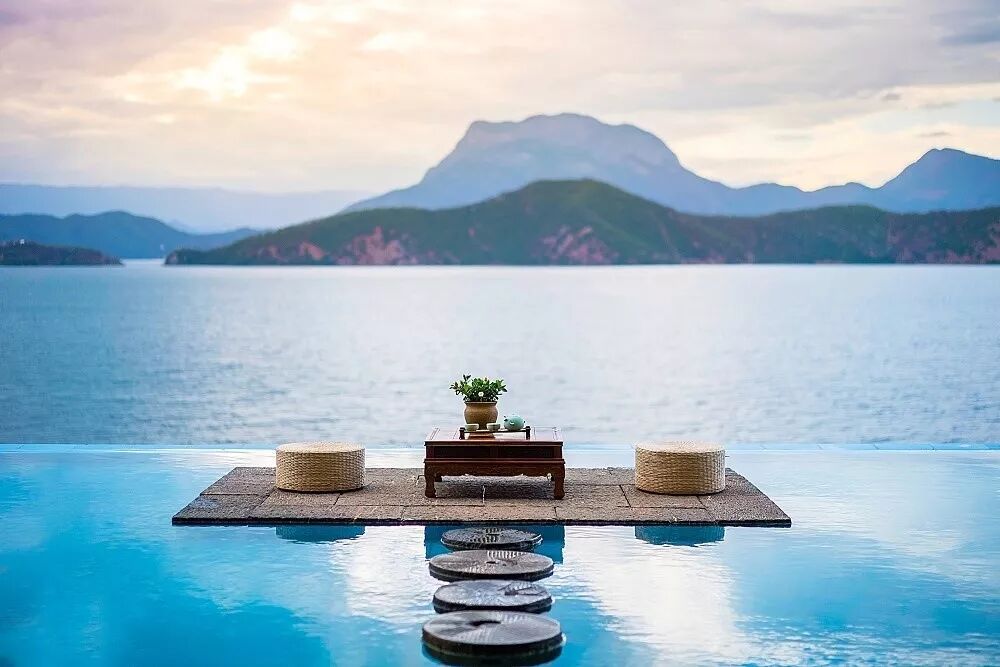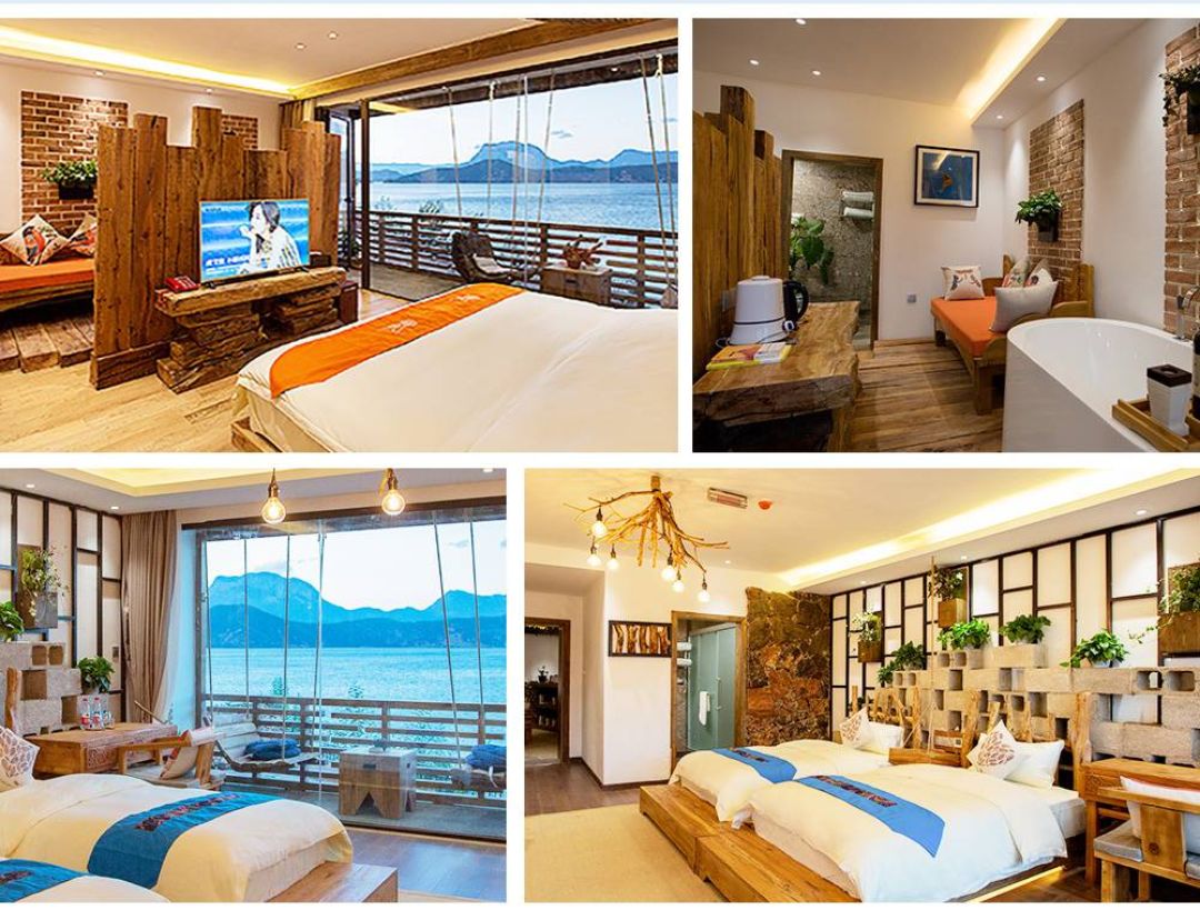 泸沽湖湖畔两晚180°湖景房:早晨被湖面吹来的清风叫醒,在微风中泛舟;夜晚躺在床上看高原繁星,让心灵在天际飞舞。