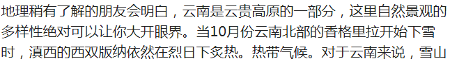 地处边陲南部的云南省,总是给人四季如春的感觉,美丽迷人,但对云南