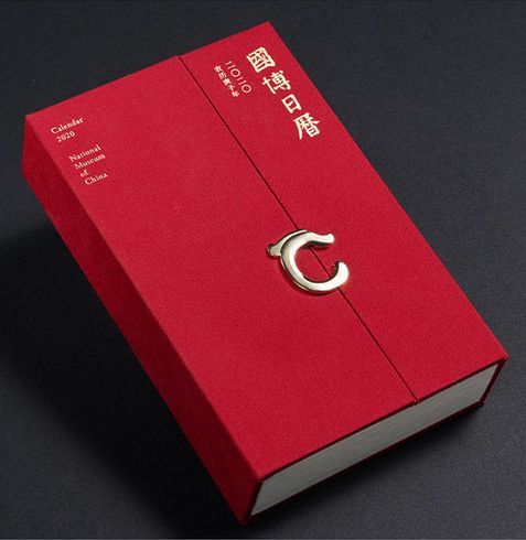 国博日历2020--中国红色调,纯棉质感布封金属质感玉龙形磁吸扣▽