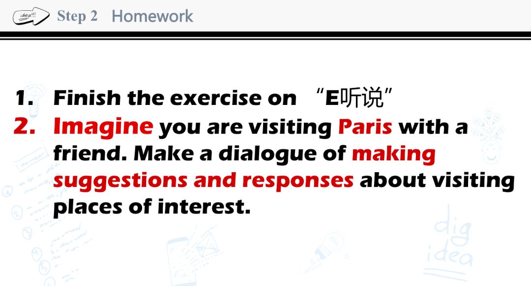 内容:指导学生就单元话题进行讨论,完成话题写作,并建议学生在课后使用E听说软件进行作文智能批改。