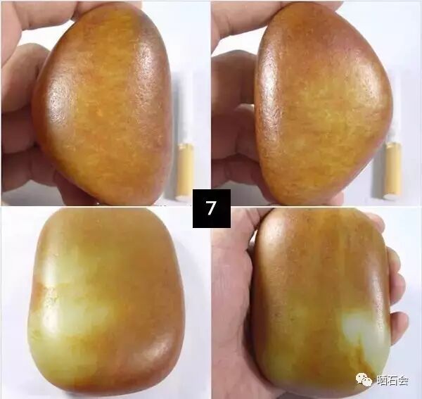 ▲(5、6)这一组图是石包玉带皮,也就是局部带僵或石,这种皮色非常好看,有时用手电筒打光照皮色重的区域时,会不透光或微透光,或根据经验来看皮色处明显带着僵。这种皮色鲜艳,沉稳,过渡色顺畅自然,没有什么可怀疑之处。