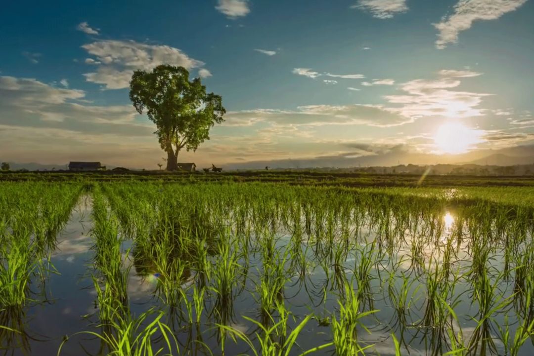 德宏芒市网红“一棵树”,一棵平凡而又普通的细叶榕树。在太阳从树顶慢慢落下,坠入西边的群山中,依旧在田野中孤独的挺立着。