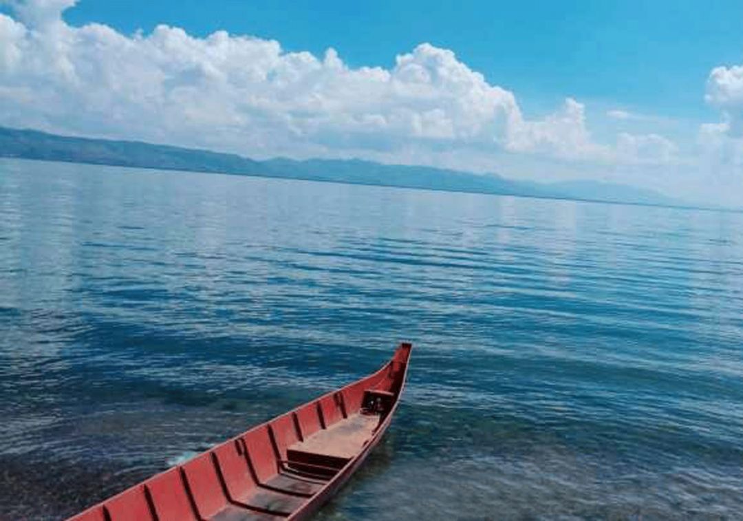 玉溪抚仙湖环湖一圈,不用门票,抚仙湖清澈的水质堪比马尔代夫,在抖音上获8.8万点赞量。