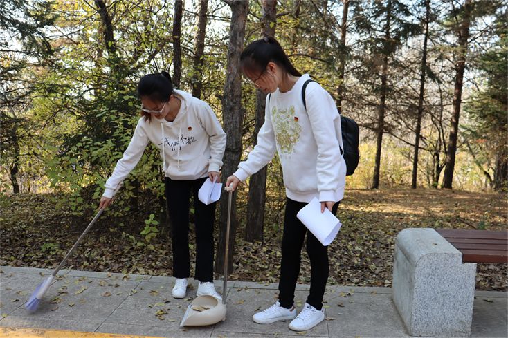 活动进行时,各位党员发展对象积极对玉龙山上的垃圾和落叶进行清扫,为我校师生营造整洁的环境。