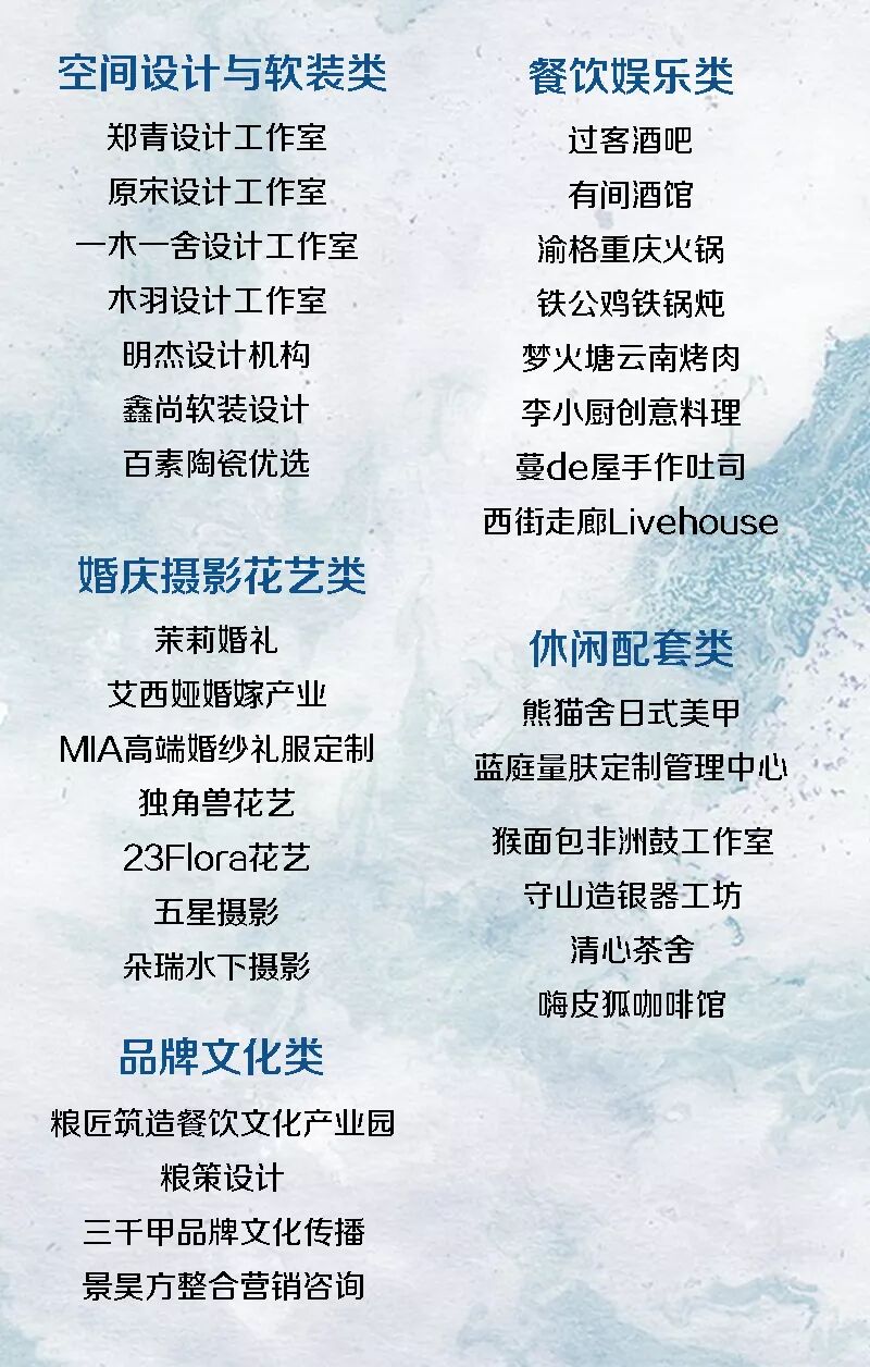目的性消费的业态,这是大院里经营业户的普通特性。目前经营的业态包括特色餐饮类、艺术培训类、文化与广告设计、空间设计类、文旅休闲类、婚庆摄影类,这些都是目的性消费很强的业态,口碑相传、老客户重复性消费和圈层销售,是大院很多经营者的生存和发展之道。