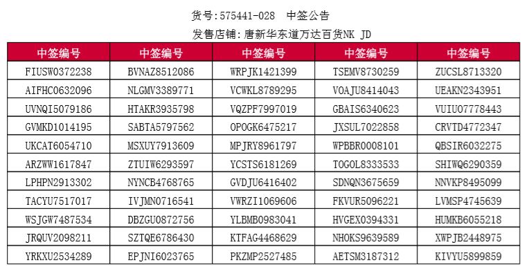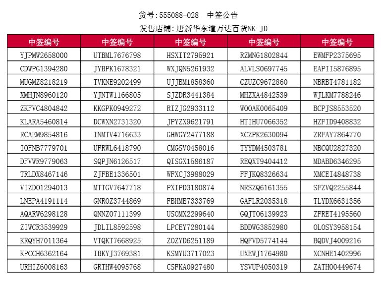 本次发售活动之登记申请的中签编码发布如下,请各位消费者自行核对查看。