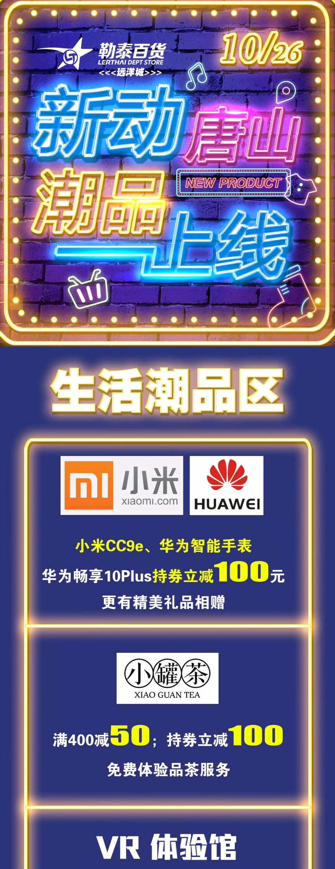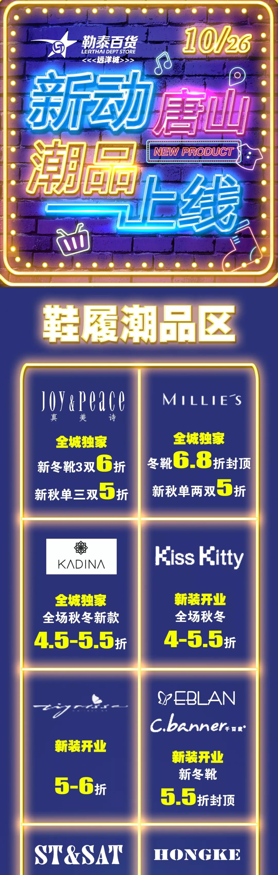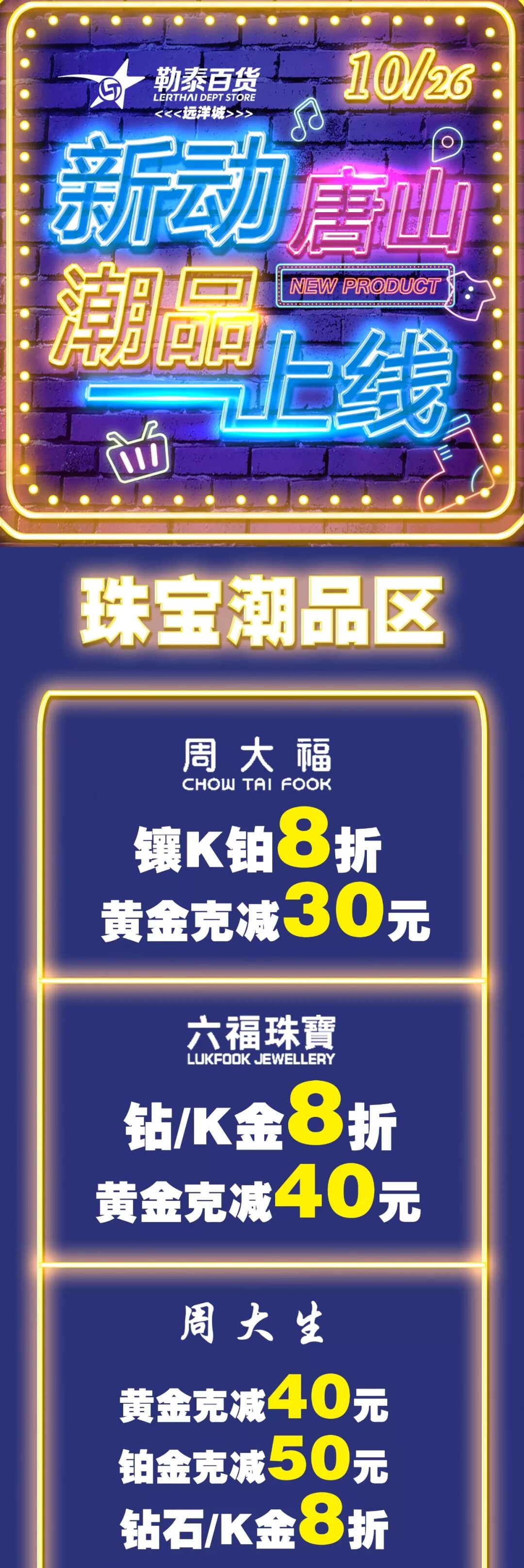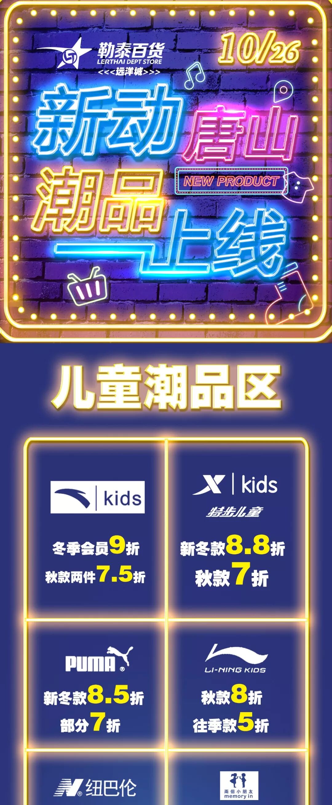 当然是最优惠的那一天啦勒泰百货远洋店10.26 “新”动唐山 潮品上线
