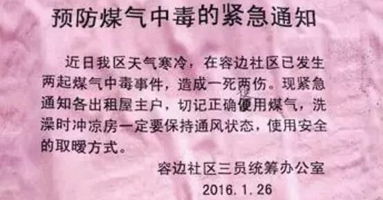 由于平房区居民平房烧煤的烟囱一般很低,属于低空排放,在一个较狭小的的空间范围内使用煤炉,不利于空气流通,很容易导致煤气中毒。