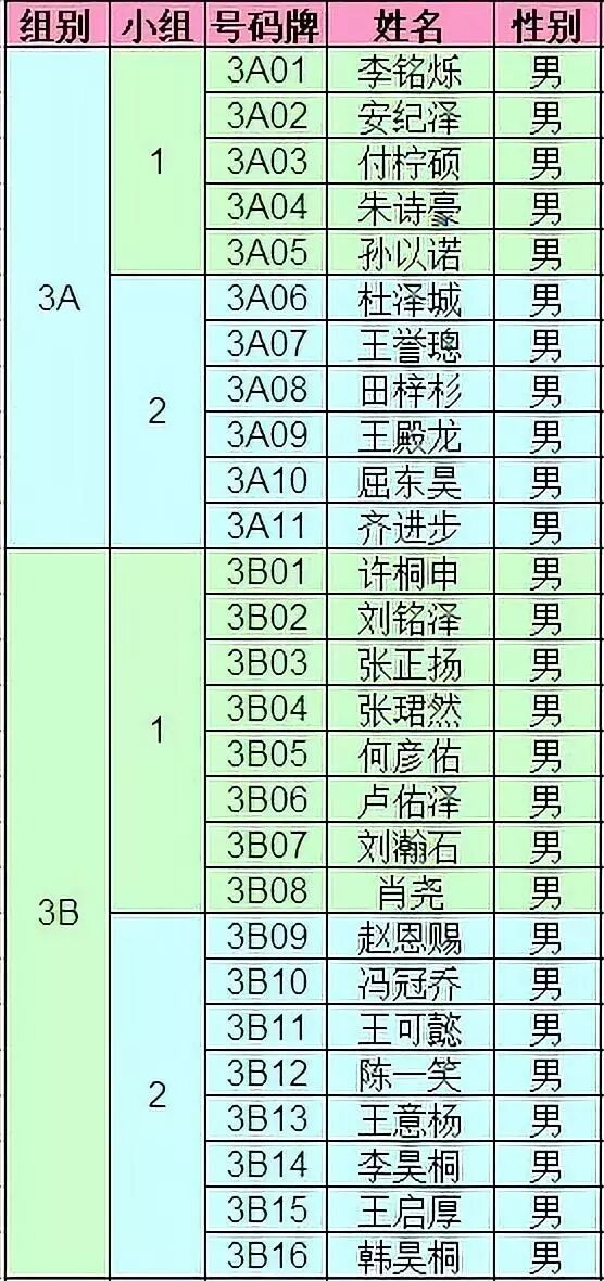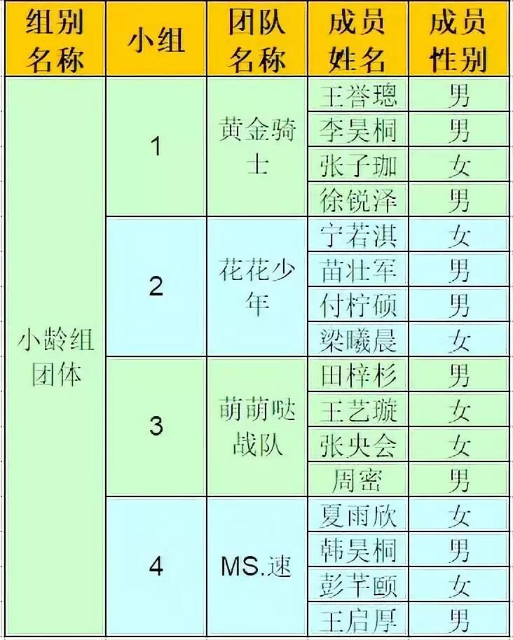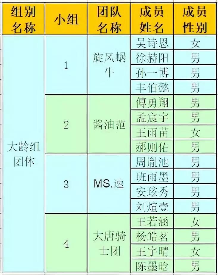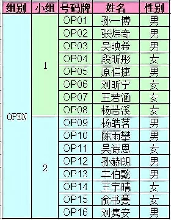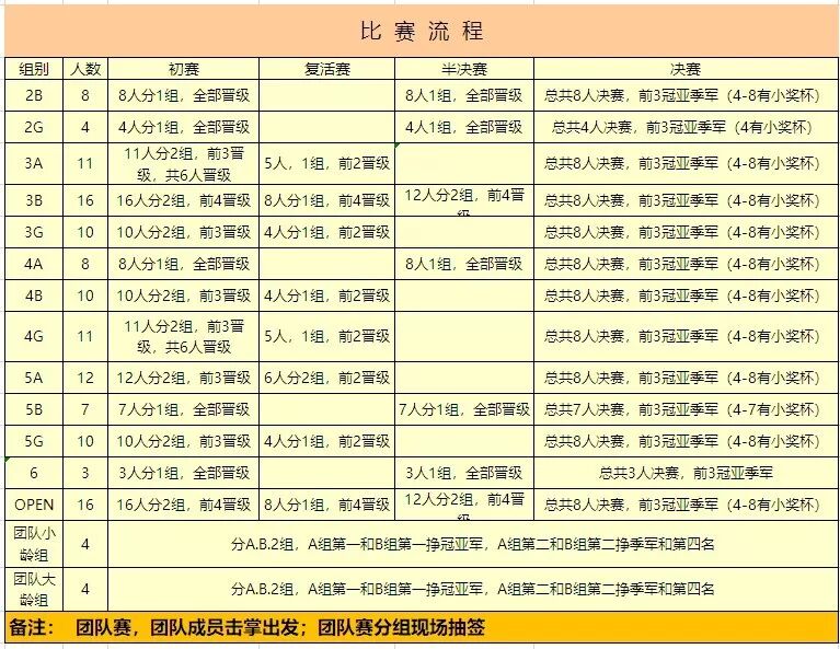 备注:个人赛分组信息按年龄大小排序;OPEN赛按照报名顺序排序。