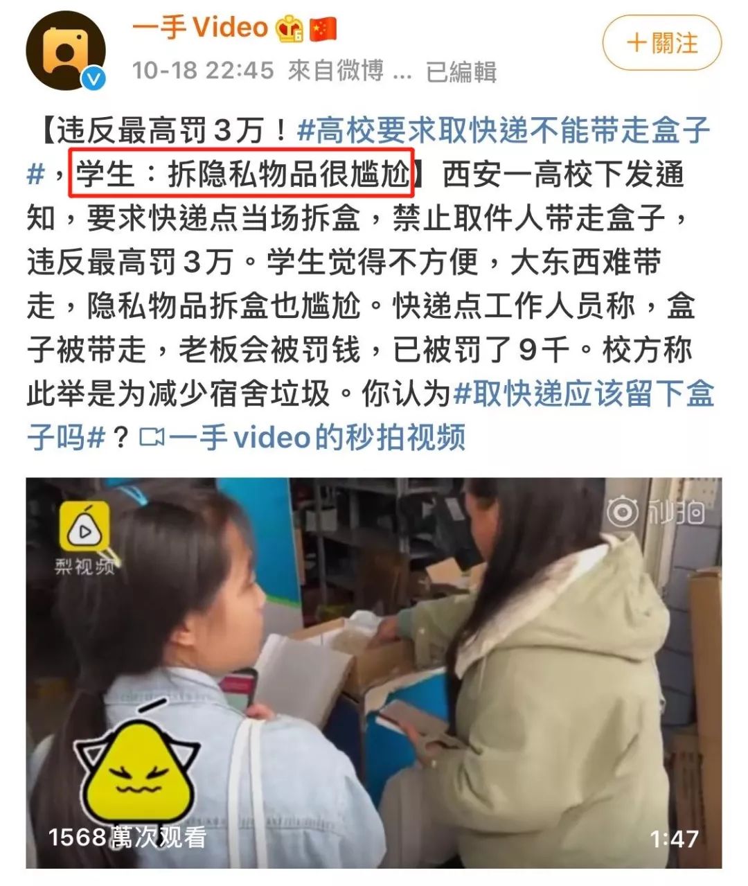 “西安一高校要求取快递不能带走盒子”前一段登上风口浪尖