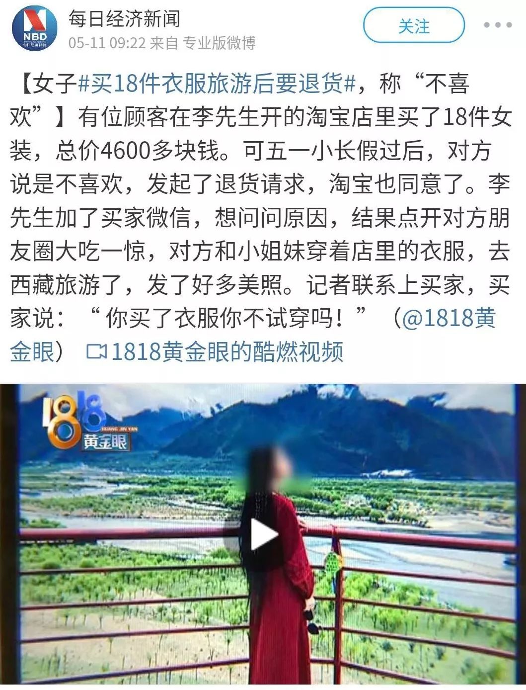 还记得前段时间,闹得沸沸扬扬的“买18件衣服旅游后全部退货”事件吗?