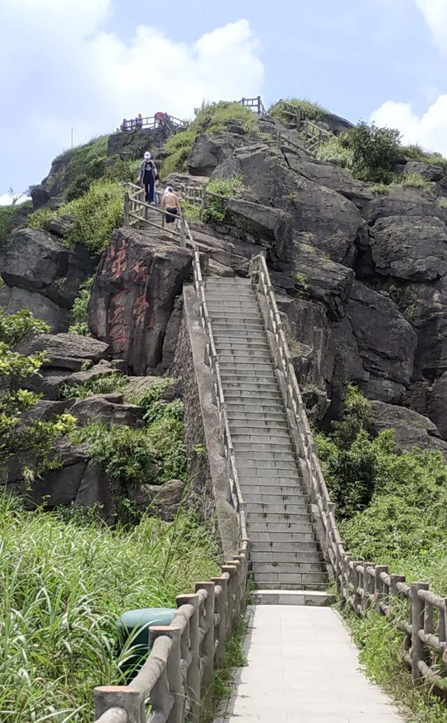 登五指山第一、二、峰,登山步道全长3.8公里,多为石级步道,海拔落差达900米