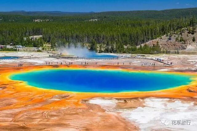 大棱镜温泉位于黄石国家公园,它惊人的美丽吸引着所有来到之类的游客。它通过光学棱镜分散了类似于彩虹色散的颜色,看起来美丽极了。