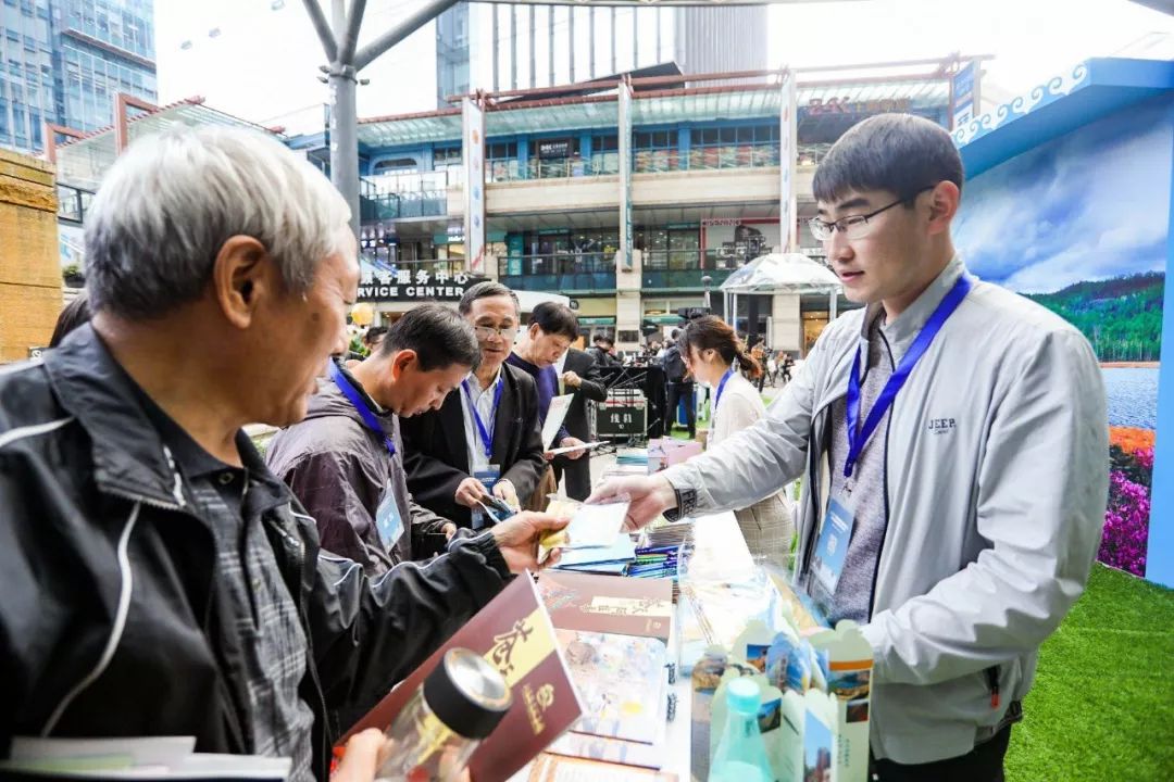 盟市代表向游客发放旅游宣传材料