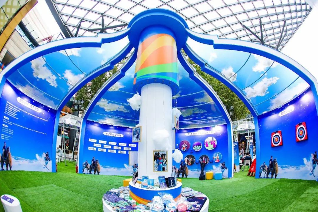 在内蒙古文旅特色快闪店内,设置了六大展示体验区域:趣味挑战区设置了体验卡任务,游客可以通过完成任务的形式了解内蒙古的文化和旅游信息;互动问答区通过“你了解内蒙古吗?”“你想来内蒙古旅游吗?”等问题,结合现场展示的内蒙古文旅资源,吸引现场观众通过游览快闪店,在寻找答案的同时了解内蒙古;声乐展示区通过播放音乐,让游客在聆听天籁之音中来感悟内蒙古的文化艺术;射箭体验区通过迷你射箭体验让游客仿佛身在内蒙古,感受蒙古族“男儿三艺”中的射箭文化,增强游客的参与感;旅游展示区,各盟市及旅游企业代表通过现场讲解、发放宣传材料等形式,让游客更加直观地了解内蒙古各盟市的文化和旅游资源;场景还原区通过还原内蒙古蓝天、白云、勒勒车、牛羊、蒙古包等元素,让游客对内蒙古游牧文化有了进一步了解。通过六大展区的设置,让游客多角度、多方位的了解内蒙古,对内蒙古产生浓烈的兴趣。