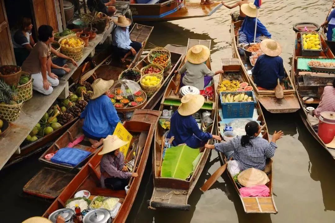 泰国水上市场是泰国的一大特色,它是集中了吃喝玩乐的最具泰国特色水上文化的体验场所和真实市井,也是色彩斑斓的旅程中最不能缺少的一抹颜色。