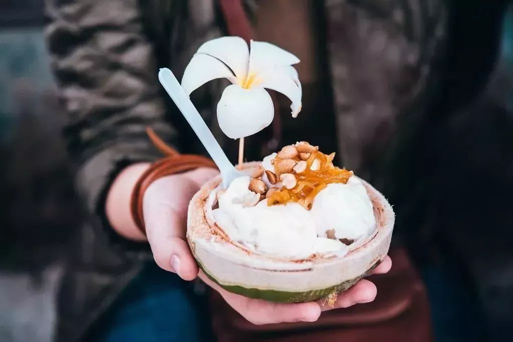 甜甜的冰淇淋和香浓的椰香碰撞,难怪它称为泰国最受欢迎的甜品。