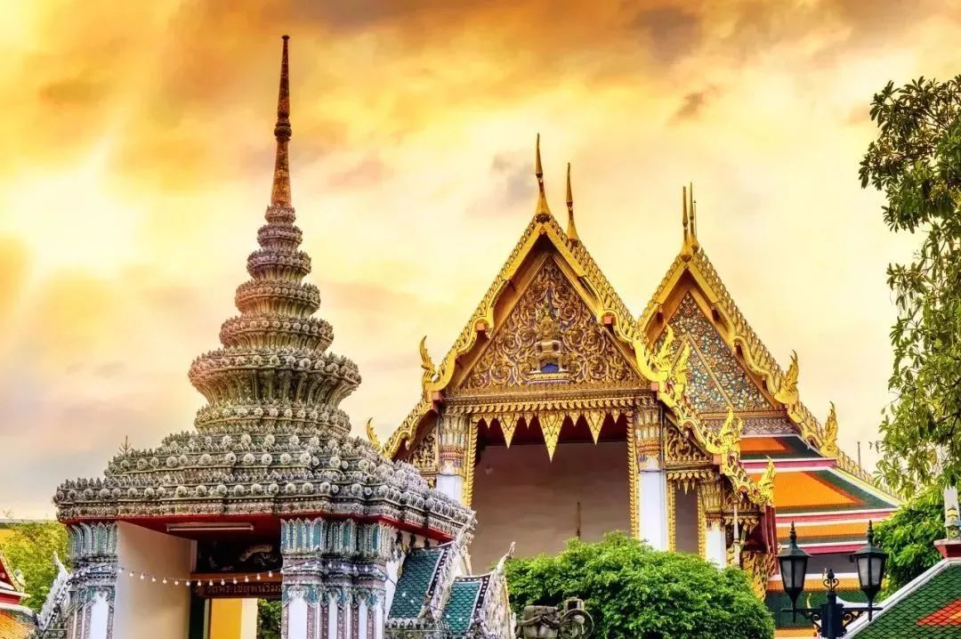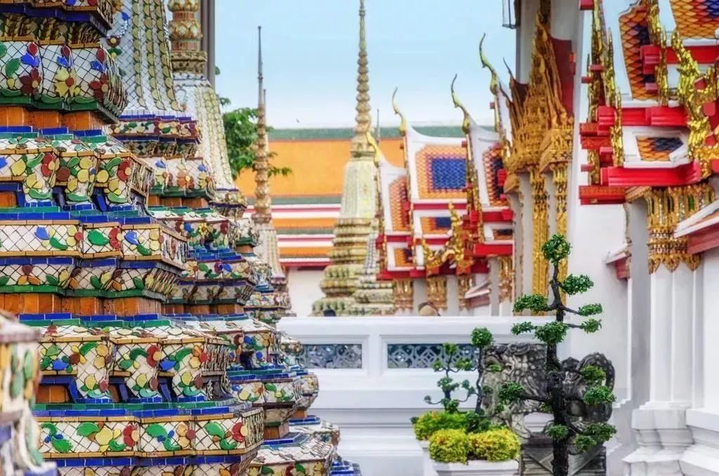 泰国寺庙跟中国寺庙最大的不同是,泰国寺庙颜色艳丽,金碧辉煌,远远就能认出非常具有代表性。