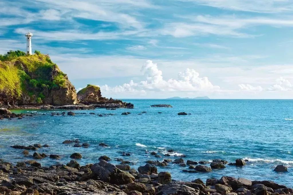 处处可见银白柔软的沙滩和湛蓝的海水,青郁的山峦嵌入蔚蓝的大海中,让人恍如置身桃花源中。