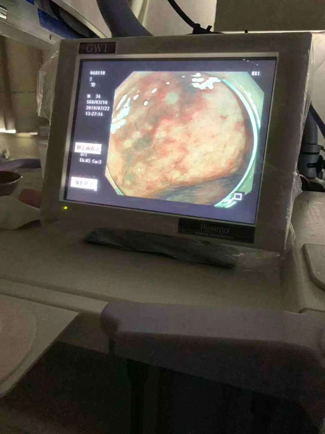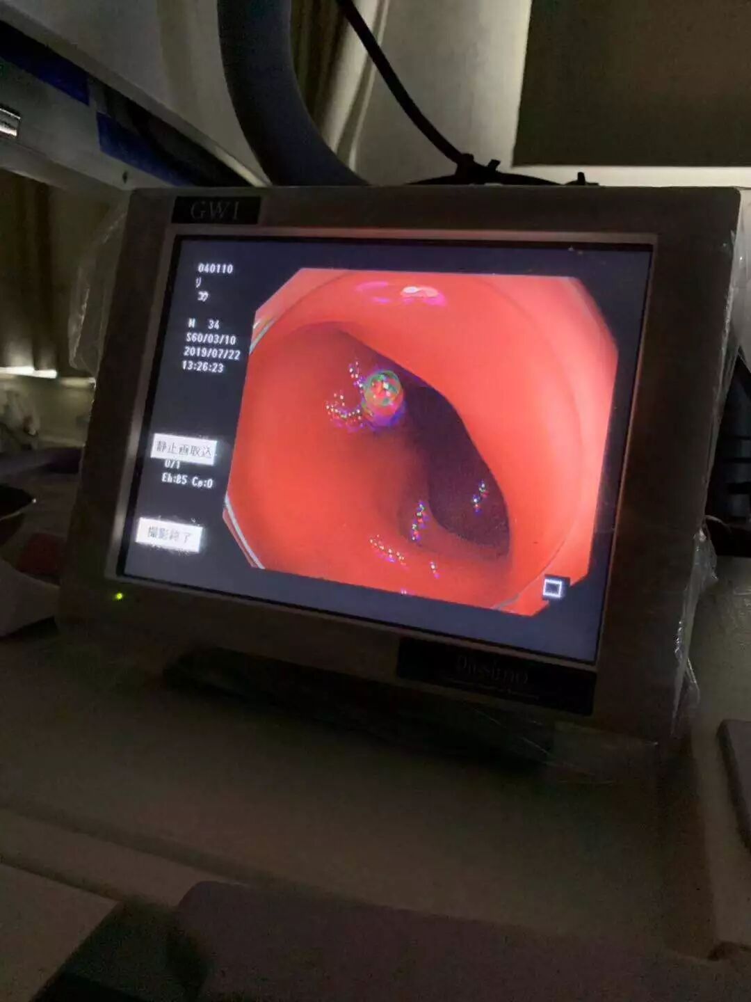 胃镜和肠镜开始前护士给老王挂上生理盐水,防止脱水,然后加入麻药做无痛肠镜,内视镜的管子插入后,老王可以在清醒的状态下看到体内检查状况,在大肠镜检查过程中发些了1颗小息肉,医生直接切除了,手法很精准,未见出血。