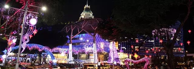 新加坡市区长达2.2公里的乌节路,是全球最长的圣诞亮灯街区,异彩纷呈的圣诞灯饰延绵不断,街上还有盛装打扮的雪人、圣诞老人和麋鹿。