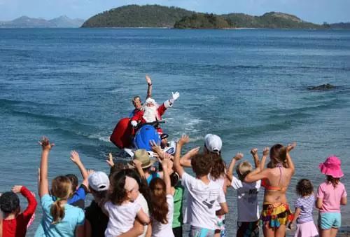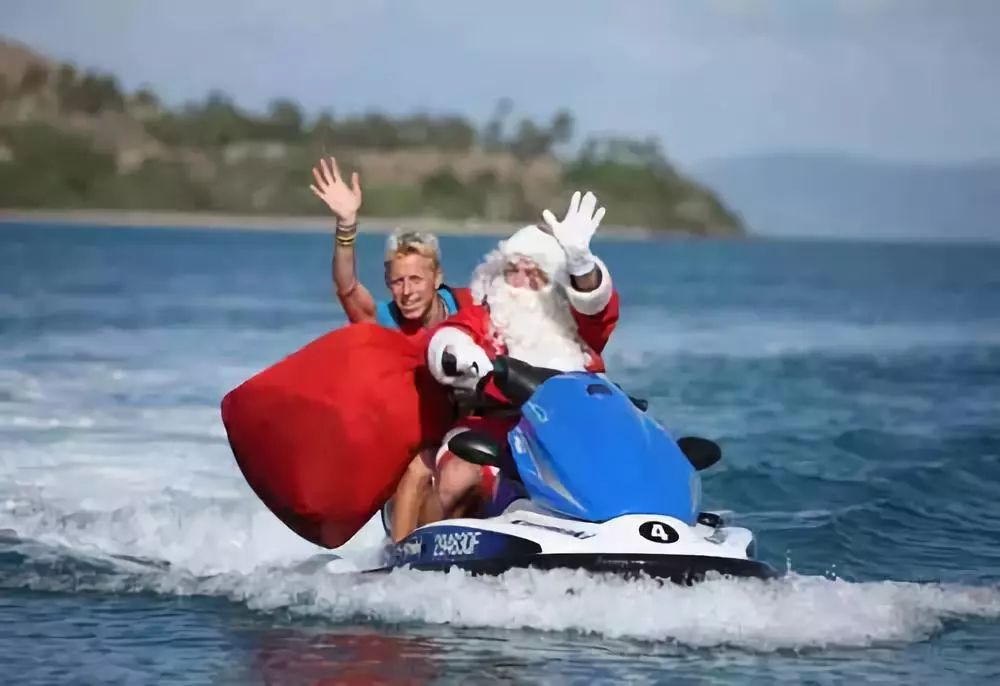 裹着红棉袄的圣诞老人驾着雪橇送礼物是司空见惯的场景了,但是当圣诞老人穿着“酷酷”的衬衫短裤,滑着冲浪板迎面奔来时,一定会让你跌破眼镜。