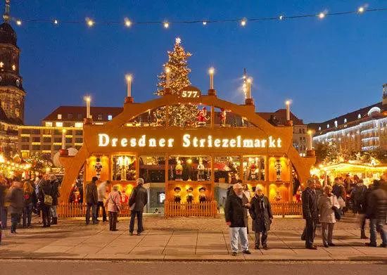 德累斯顿,举世闻名的德国最古老圣诞集市,而成为圣诞节期间最受青睐的旅游目的地。这个起源于1434年的圣诞集市高潮部分一直是圣诞果脯蛋糕庆典:大约4吨重的巨型蛋糕从茨温格宫出发,经过森帕歌剧院、宫廷教堂和圣母教堂,直达圣诞集市上,在那里,它将被切成小块出售给那些熙熙攘攘前来追捧的游客们。