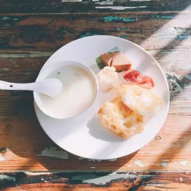 木质的餐桌上,一碗粥,一片煎蛋,就充满了时光的味道。