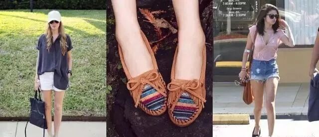 许多名人也都是莫卡辛鞋爱好者,像是麦莉、赛琳娜等等,日常便服都时常用莫卡辛鞋做穿搭,简单搭上牛仔裤长、短裤就非常休闲又不邋遢。