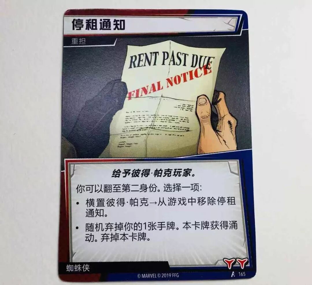 所以,既然超级英雄们也一样要遇到 柴米油盐酱醋茶的麻烦,那么为什么不放进游戏里来呢?这不是更加还原吗?就这样,每个英雄角色就被设计师赋予了一张专门的倒霉事卡牌,当然,这名字是我起的,学名叫重担卡牌,就是超英雄们在日常生活里面临的生活重担,这些重担困扰着超级英雄们,但也因此令他们没有在塑造角色时失去了“人性”的那一面。