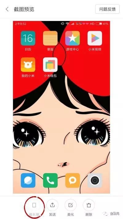 先用小米自带的截屏方式(按键截屏、菜单栏截屏、悬浮球截屏、三指下拉截屏等)来截屏,然后再点击已截好的图片,最后再点击【截长屏】,就能通过下拉滚动来截长屏了!