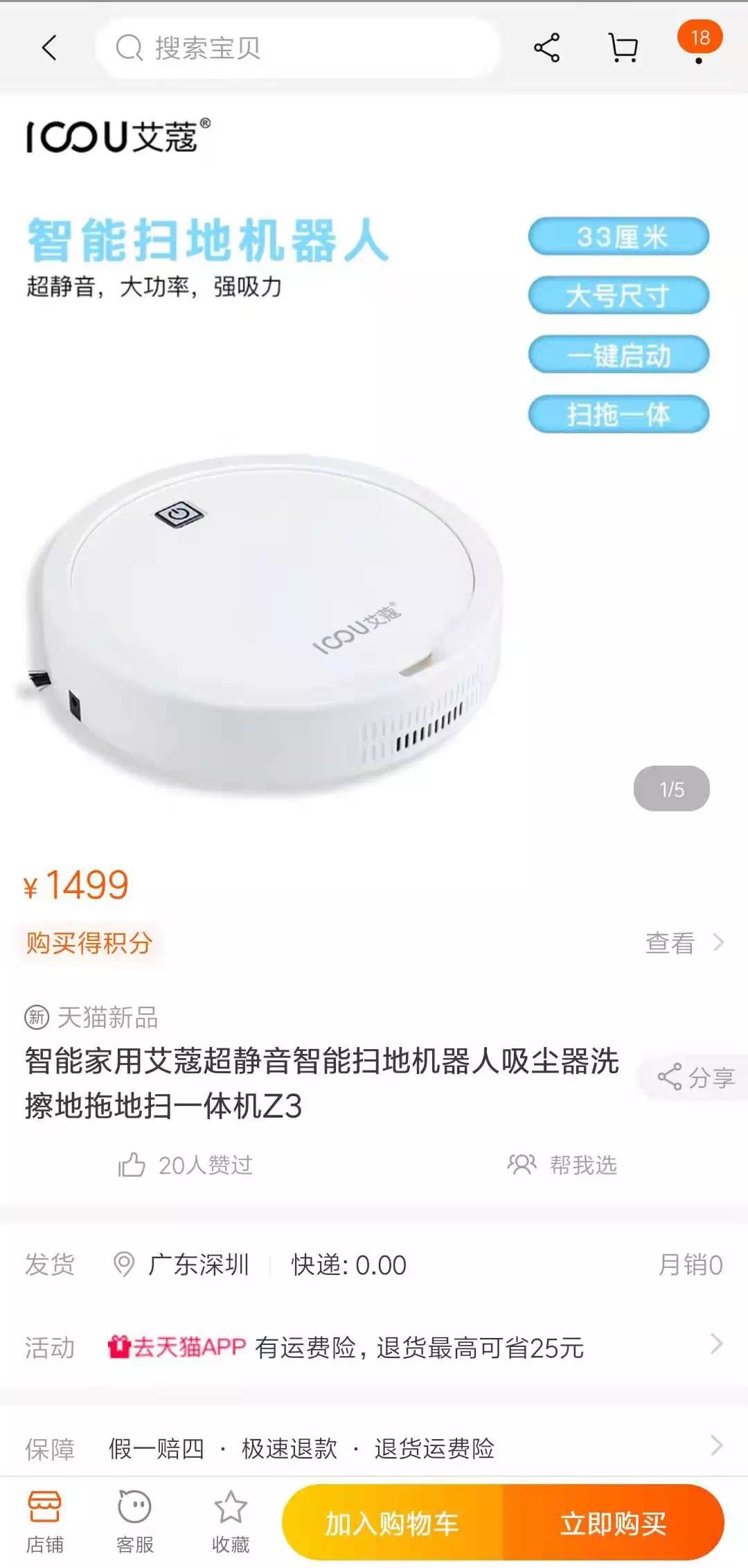 转发朋友圈集38个赞+139元即可领取价值1499元艾蔻智能扫地机器人