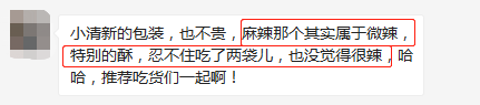 麻辣味的,先酥后香,微辣的米香,每一口都是层次分明,勾人心魂。微辣,不会火辣辣烧灼感,适合怕辣的同学,吃了不上火长痘痘,简直完美!不同于其他单纯追求变态辣的零食,吃完第二天就冒痘痘,讨厌到不行,简直没法儿出门了!