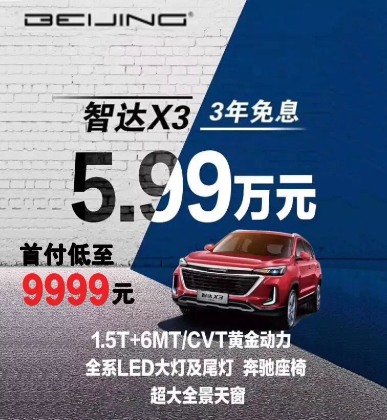 5.99万起首付9999元开回家