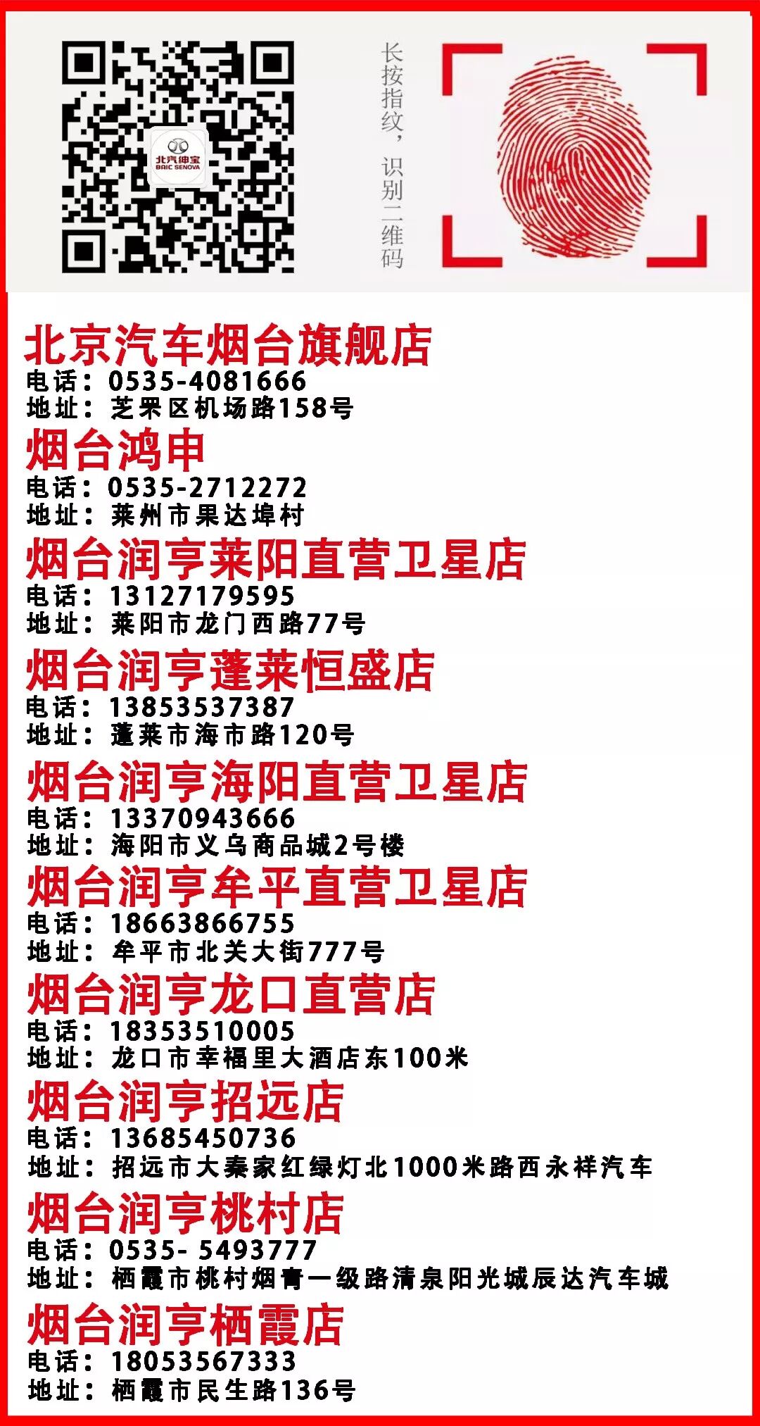 地址:烟台芝罘区机场路158号鸿运汽车城展厅南首(北京汽车4S店)