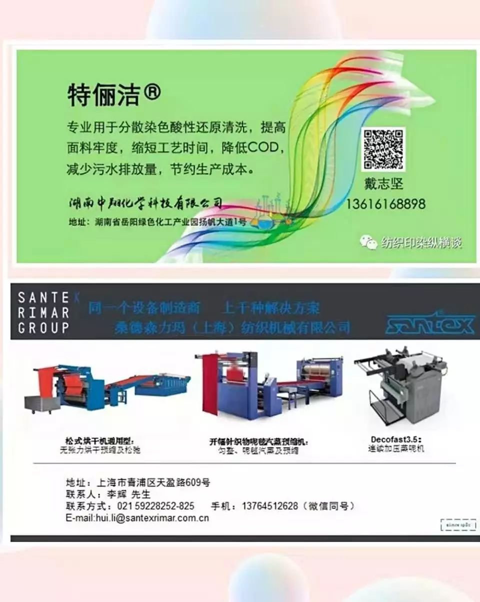 声明:纺织印染纵横谈公众号所发稿件、图片、视频均用于学习交流。文章来自网络或行业师友投稿,版权归作者所有,若涉及作品内容、版权和其他问题,烦请原作者联系我们,与您共同协商解决。联系方式:13562496991张志红