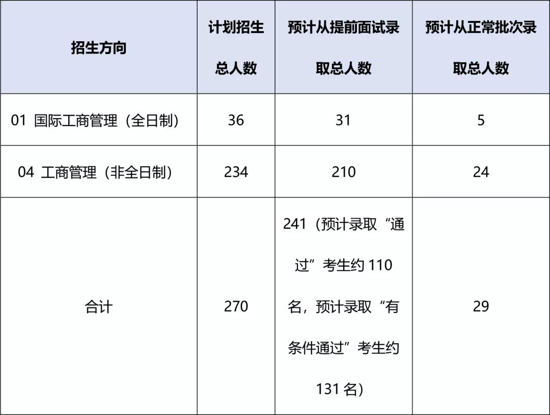 管理学院2020年计划面向全国招收工商管理硕士(MBA)270名,包括国际工商管理(全日制)、工商管理(非全日制)两个报考方向。