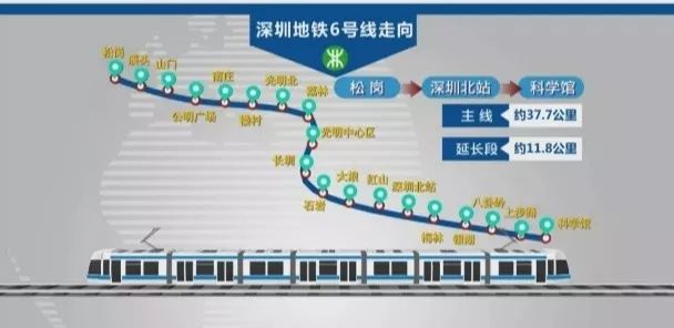 光明线连接龙华街道新城、石岩、光明、公明、松岗等片区,并通过龙华线换乘至福田中心区,为联系核心城区与中部综合组团、西部高新组团的城市组团快线。