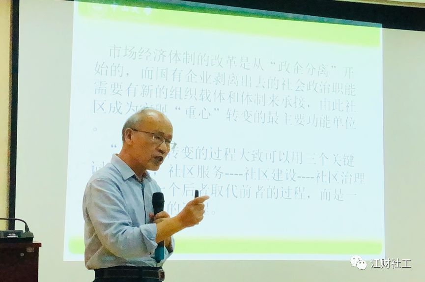 讲座伊始,尹院长以简洁的语言向在座的老师和同学们介绍蔡禾教授,现场师生响起了热烈的掌声欢迎蔡禾教授的到来。蔡禾教授首先从城市基层社会管理的变化历程切入本次讲座的主题,为我们阐述了改革开放以来,中国城市基层社会管理的最大变化就是管理的重心从“单位”逐步转向“社区”。 随着改革的深入,基层社会面临的不仅仅是“单位”改制带来的职能转移,还面临急剧的社会分化,快速的人口流动,以及由此引起的社会问题和社会矛盾,仅仅把社区定位在提供服务上已经难以满足城市管理的要求,原有的社区体制难以满足日益增长的城市基层管理的需求,客观上需要新的基层社会管理体制。