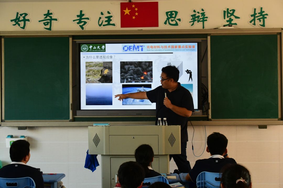 为了扎实开展好“不忘初心、牢记使命”主题教育,让思想教育取得实效。2019年10月23日下午,中山大学物理与天文学院教工党支部来我校开展交流活动,并为初一年级带来了精彩的科普讲座。