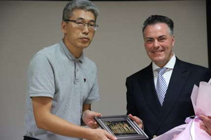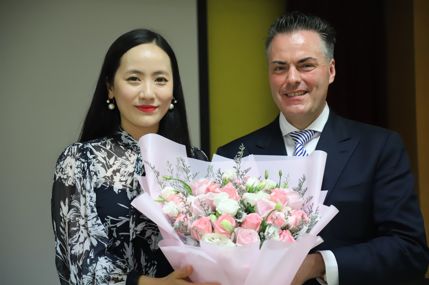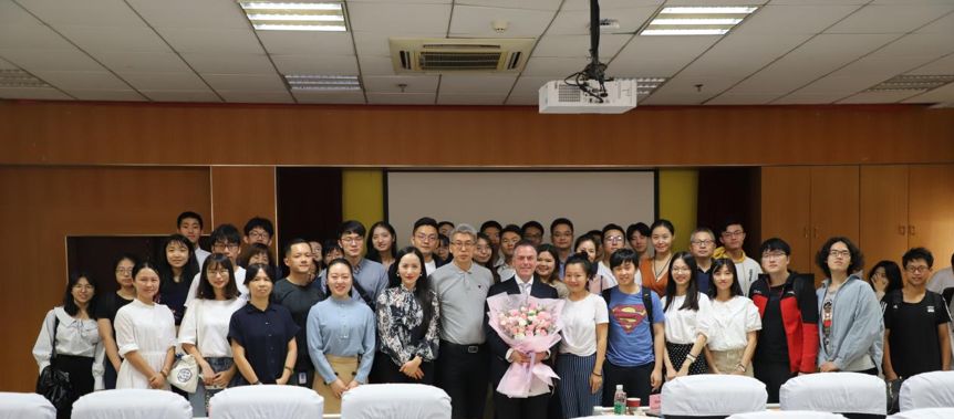 讲座最后艺术学院的马琳副教授为Daniel Froschauer主席献花,药学院党委岳辉书记向他赠送了纪念品。Daniel Froschauer主席这场精彩的讲座,让在场的老师和同学们接受了一次难得的艺术熏陶,感受到音乐的无穷魅力,从而进一步认识到艺术教育在学校美育当中发挥的重要作用。