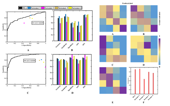 图4. 人工智能模型的脊柱侧弯筛查和严重程度评估能力相当于人类专家水平