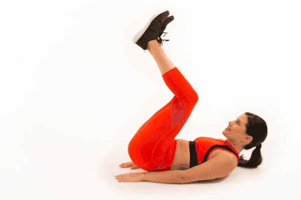 将双手自然平放在身体两侧,双脚微弯,上半身不完全躺下,头部离开地面约30度,接着将微弯的双脚抬起,放下时不要放回地面,一直维持在空中,重复做一分钟。