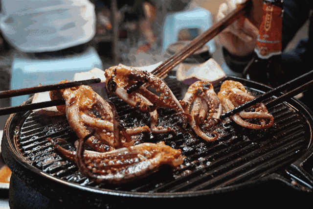 走出烤肉店,一不小心瞟到了隔壁的烤鱼店