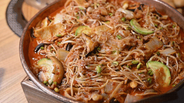 别家韩餐馆难得一见的「猪肉豆芽锅」,已成了罗云洞人气颇高的招牌,用米饭随意拌拌都好吃到超乎想象。最近韩国年轻人最爱的「海鲜奶油锅」也来杭州了,甜甜的汤底中加入新西兰青口、虾、蛤蜊、蘑菇…用面包沾着汤汁吃更是好吃到爆炸!