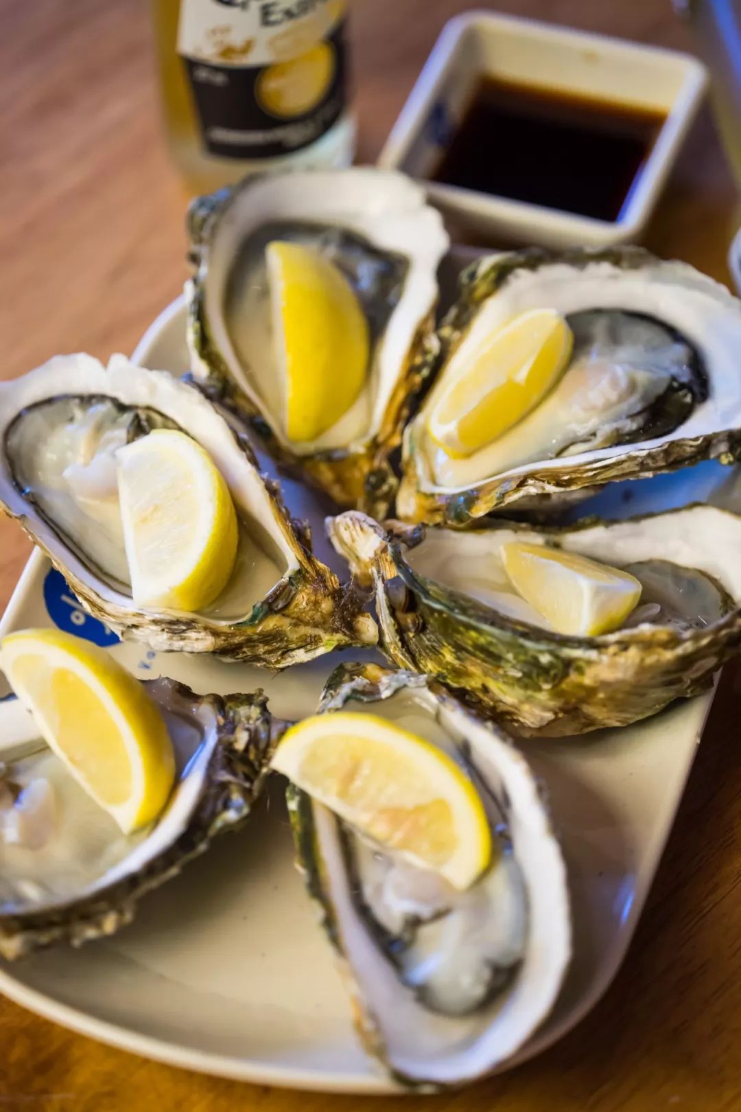 店里的生蚝都是来自广东的湛江蚝,保证每天直运,从生蚝基地出水到上桌,不会超过24小时。如果接受不了生吃的,也可以点「烤一口蚝」,不大不小的个头正好可以一口一个,作为烧烤必点菜,滋味不会踩雷。