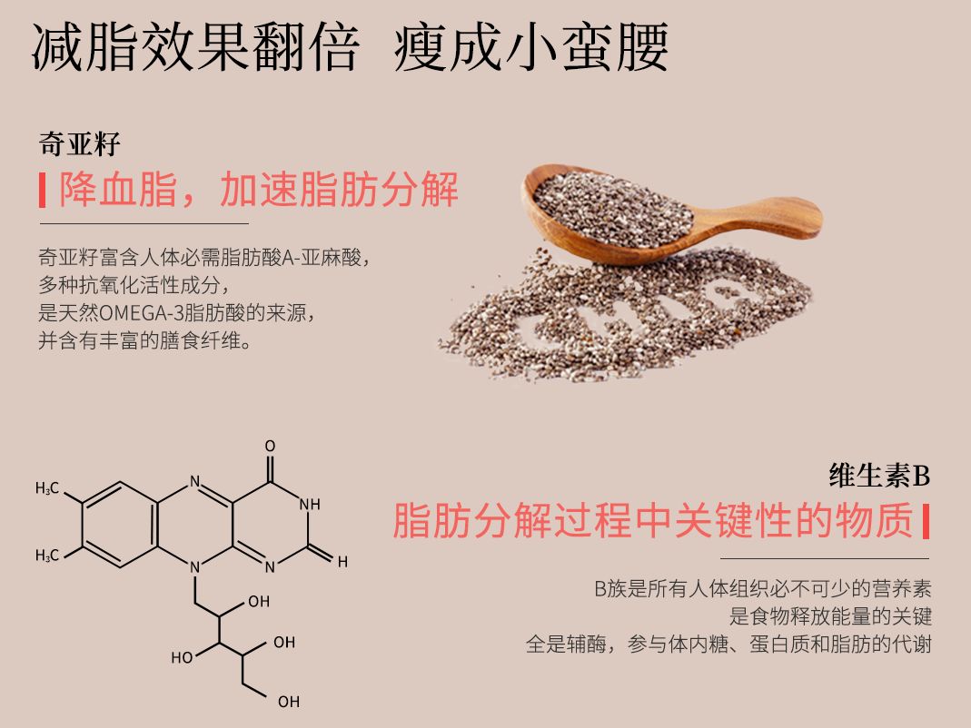 但我相信大多数人都不知道奇亚籽+维生素B的减脂效果更是翻倍,维生素作为加速分解脂肪的参与物,再加上四大原理的结合让你瘦到没朋友。