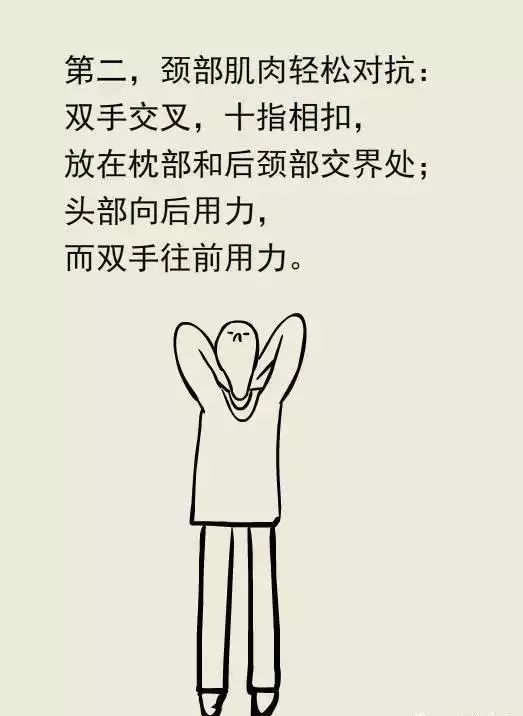 2、颈部肌肉轻松对抗;